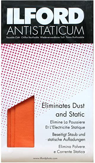 El paño antiestático Ilford Antistaticum es un paño naranja especialmente tratado que elimina el polvo y la estática, y es indispensable a la hora de limpiar negativos e impresiones fotográficas.